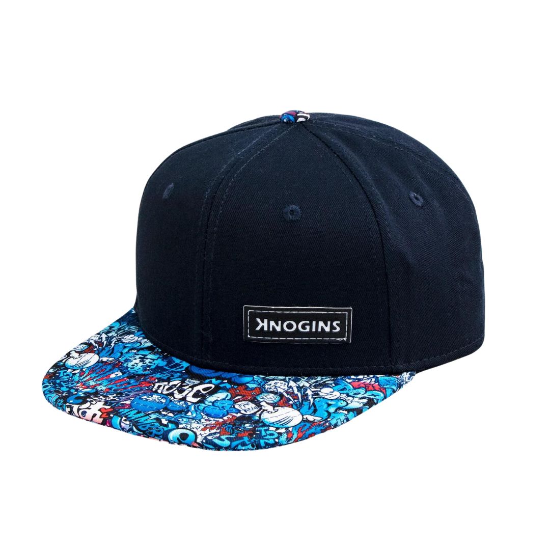 The Knogins Chaos Snapback Hat is a premium quality snapback hat designed with the "skater-kid" in mind. Featuring a deep Navy crown and an explosive print with vibrant blue and red accents on the peak, it's the perfect accessory to make a statement and elevate any outfit.